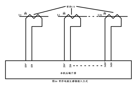 • 本機對零序電流互感器的同名端(亦稱極性)要求****一致接入機器。參閱下圖16。