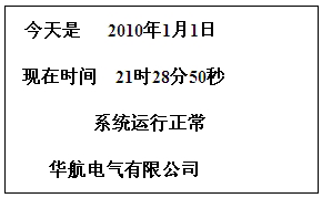 6.6.3  按一下“加一”鍵,屏幕應馬上顯示“年、月、日、時間及公司名稱”;則表示裝置一切正常。如果裝置上某一部分有故障,例如主機板RAM故障、ROM故障、A/D故障,屏幕都將以漢字形式顯示出來。