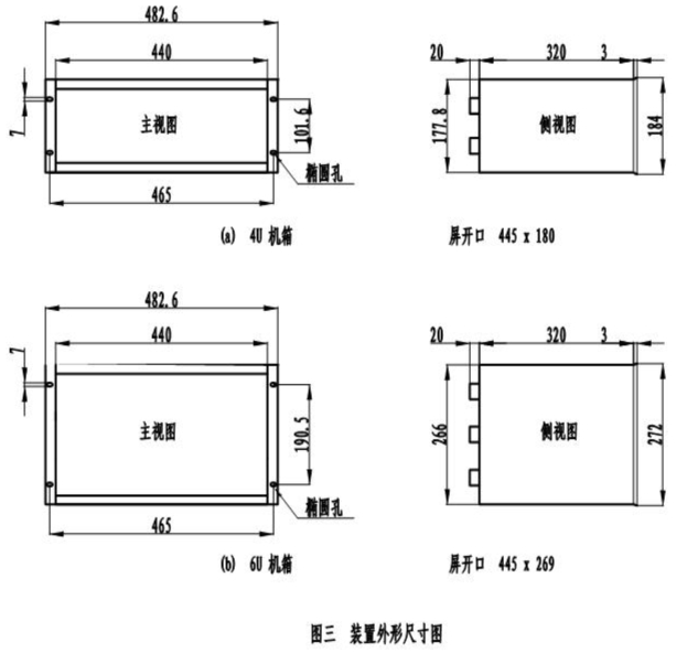 7.1.1  不帶跳閘功能,1至60路裝置按4U機箱開孔,參照下面(a)圖。
