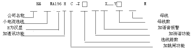 例如:12 路帶通訊、帶跳閘、帶語音報警、帶兩段母線消諧功能型號為: