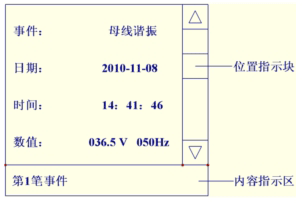 “紅色文字”表示光標所在位置。在第2屏下,按“UP鍵”或“DOWN鍵”移動光標,按“Fn鍵”退回上一級菜單,按“ENT鍵”進入所選擇的下一級菜單。選擇“事件記錄”并按“ENT鍵”進入“事件記錄”查閱頁面。如圖4: