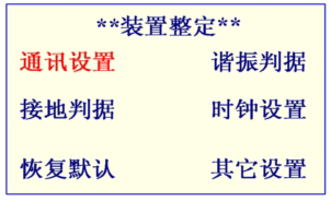在第7屏下的其它“裝置整定”項目的設置方法和“通訊設置”的設置方法類似,只是所設置的項目多少不一樣,為了表述的更加清晰,把裝置整定各項制成表格。