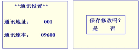 在第7屏下,選擇“通訊設置” 并按“ENT鍵”可進入“通訊設置”頁面,如圖9。